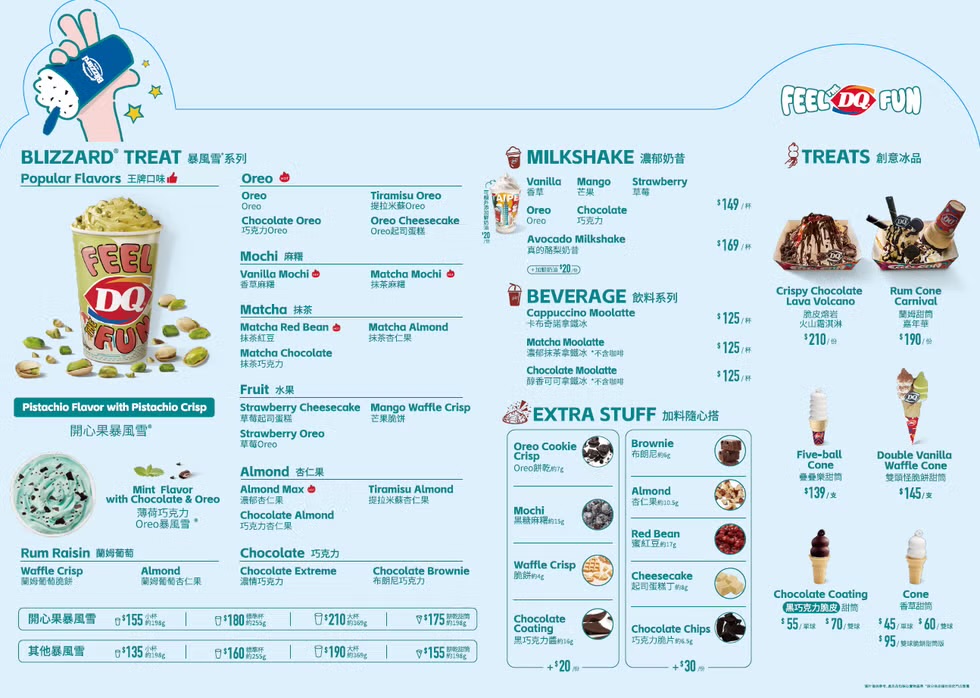 全球超過7700間分店的美式冰淇淋品牌 DQ 在今天(11/18)重返台灣,門市進駐於台北101美食街。最讓人引頸期待已久莫過於知名的暴風雪系列冰品,DQ暴風雪系列採用獨家配方的奶漿,透過完美的40%空氣比例造就了即使把杯子180度倒過來也不會灑出來的冰淇淋,口感不但綿密細緻,台北門市還全面升級改良加料配方,讓每一口的層次再躍進。