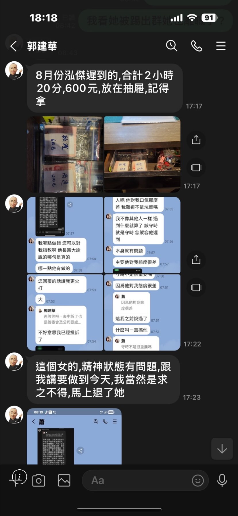 事情的起因,源自公司內部一位黃姓保全人員,經常上班遲到,甚至比正常打卡時間晚一至三小時。該名秘書在群組中提出質疑,認為職場應講求公平,守時是最基本的職業道德。然而,她的反應卻換來經理郭建華的一句:「幹嘛一直搞他?」這段對話紀錄被曝光後,讓人不禁懷疑管理層是否存在偏袒與縱容。